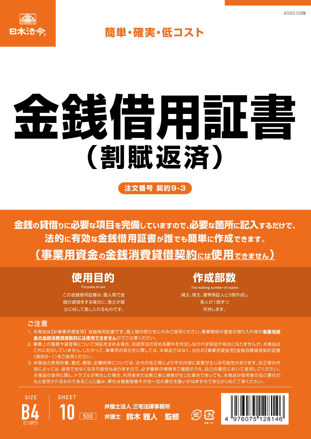 - ネット通販では金銭借用証書として販売されている